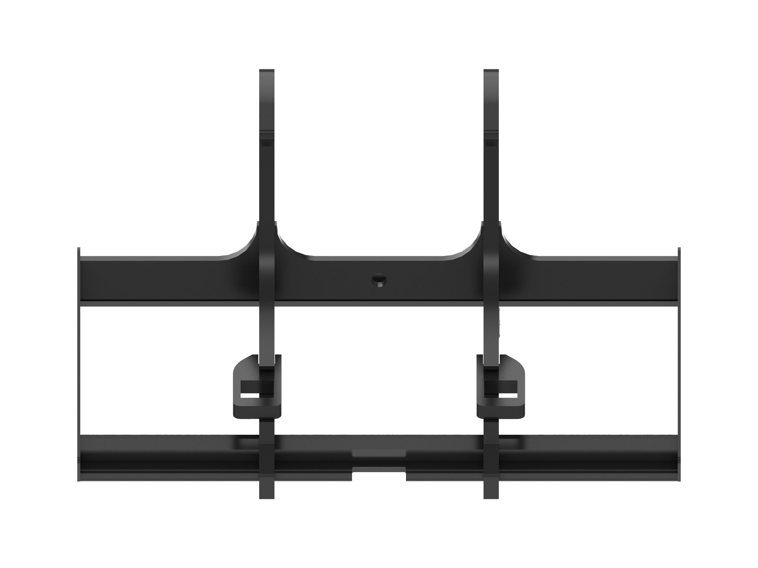 Notched rail-type carriage design allows fork tines to be easily re-spaced or changed and locked into place.