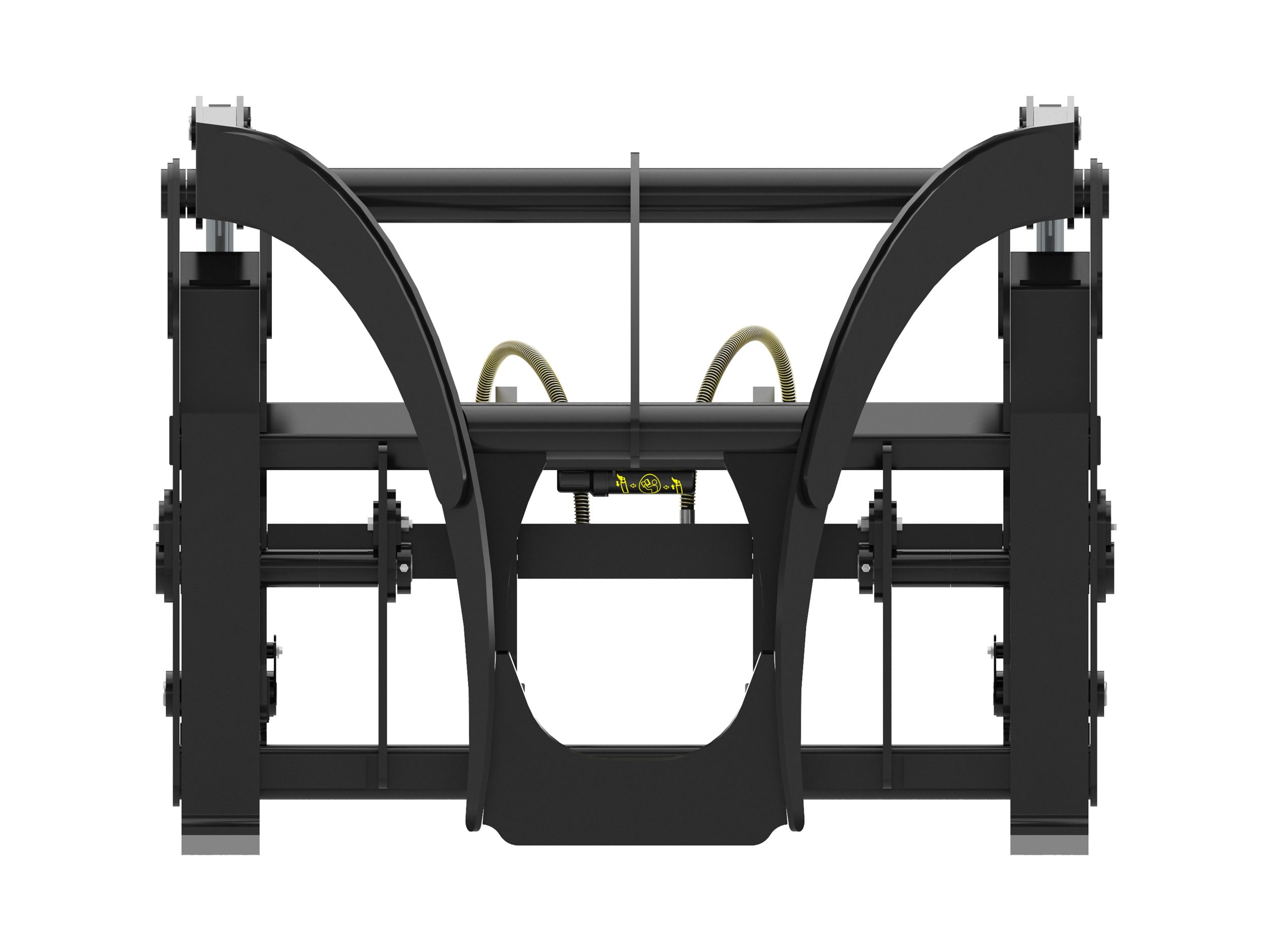 Narrow top clamp is designed to close between the tines, which would allow the operator to clamp tightly on a single log.