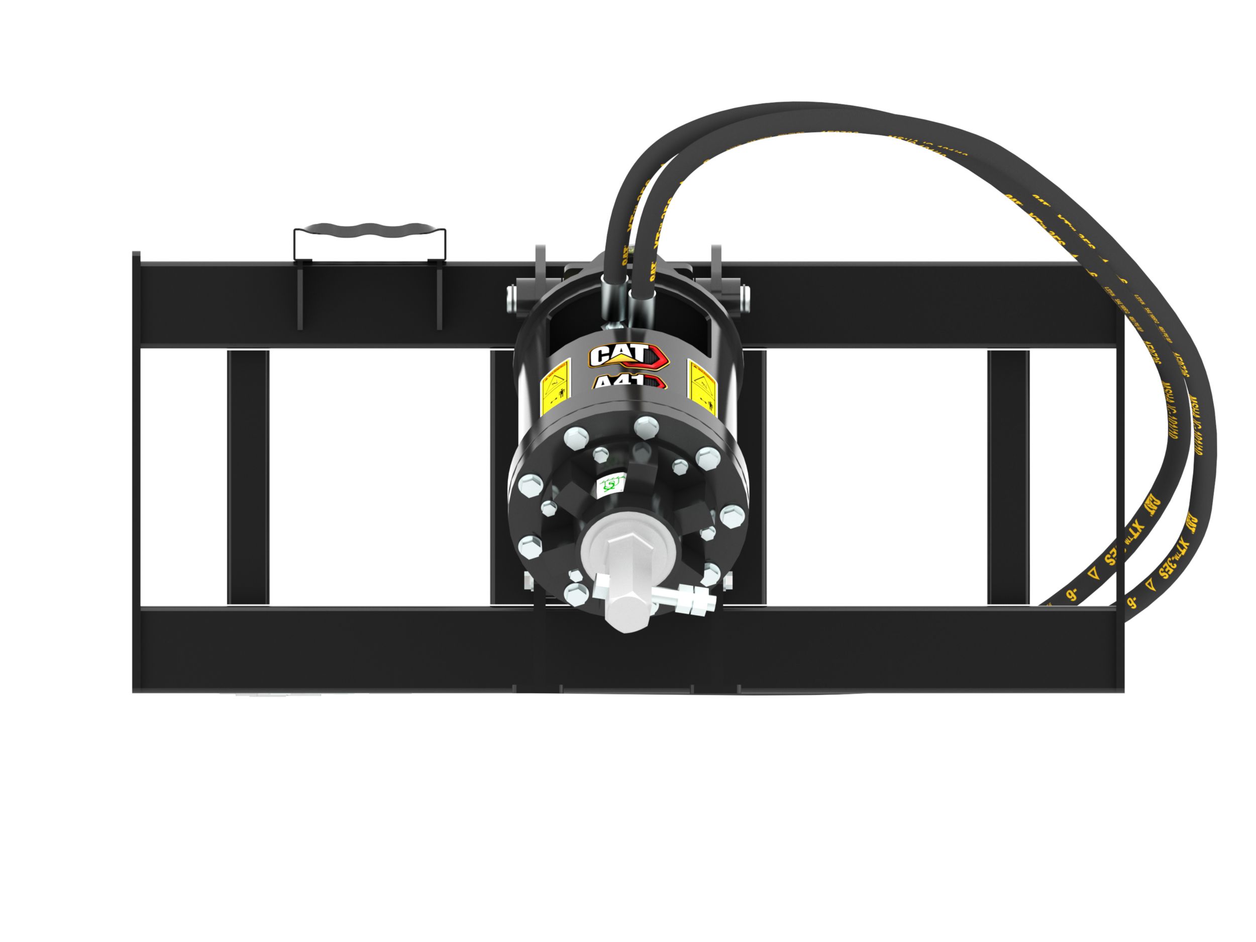 Exclusive Cat® mounting bracket for superior structural reinforcement, positioning flexibility, easy transportation, and near vertical storage. Also includes serrated step to allow safer and easier access into the cab.