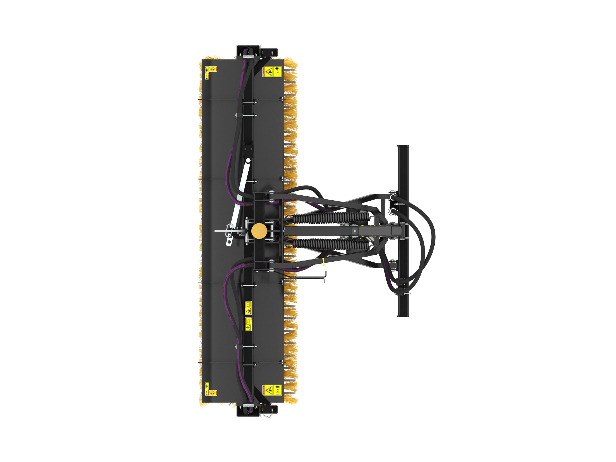 Unique suspension system eliminates the need for support wheels. Brush maintains constant ground pressure through a range of vertical motion from the initial setting.