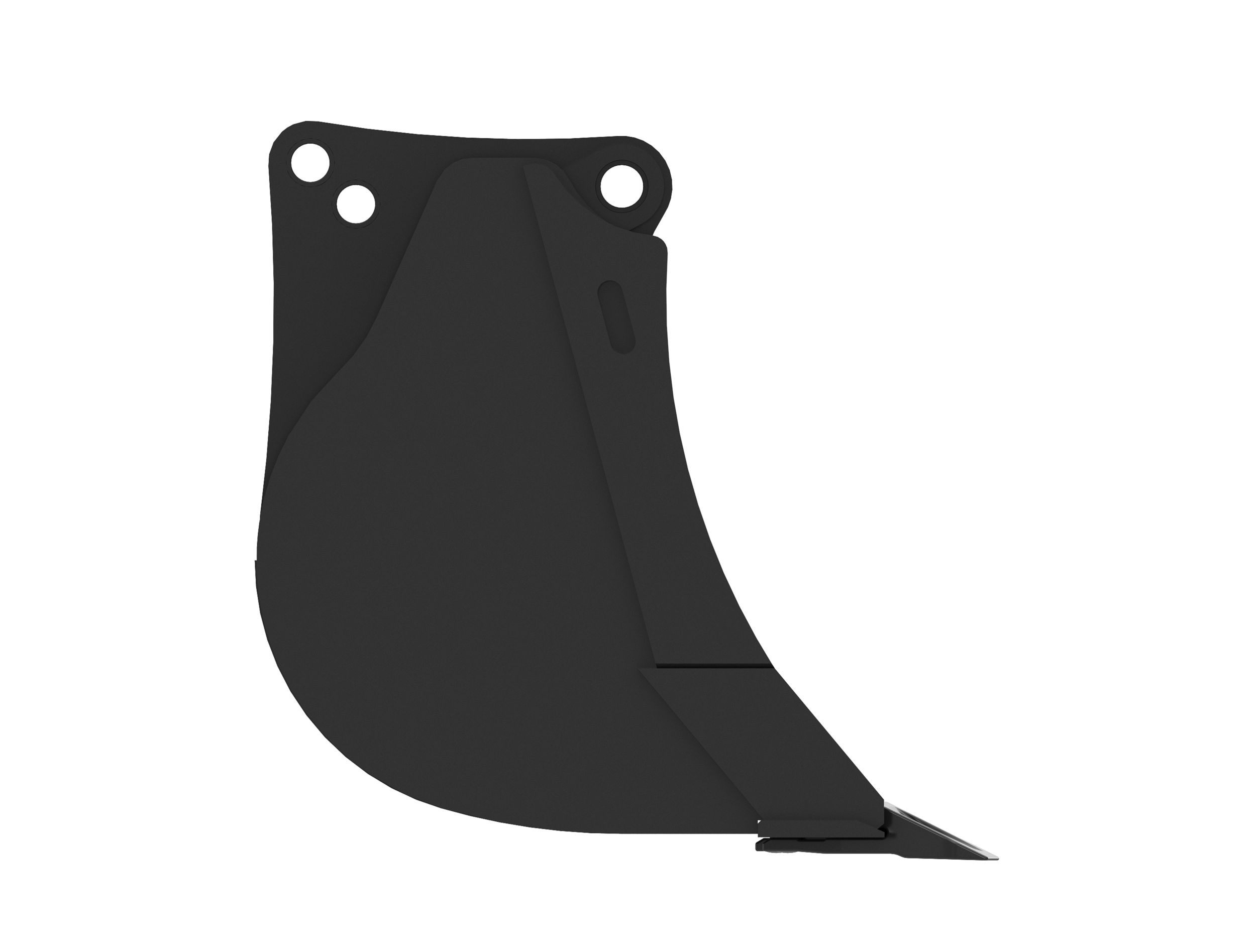 Enhanced bucket shape allows material to flow more easily. Tapered bucket sidewalls allow for easy dumping of sticky material.