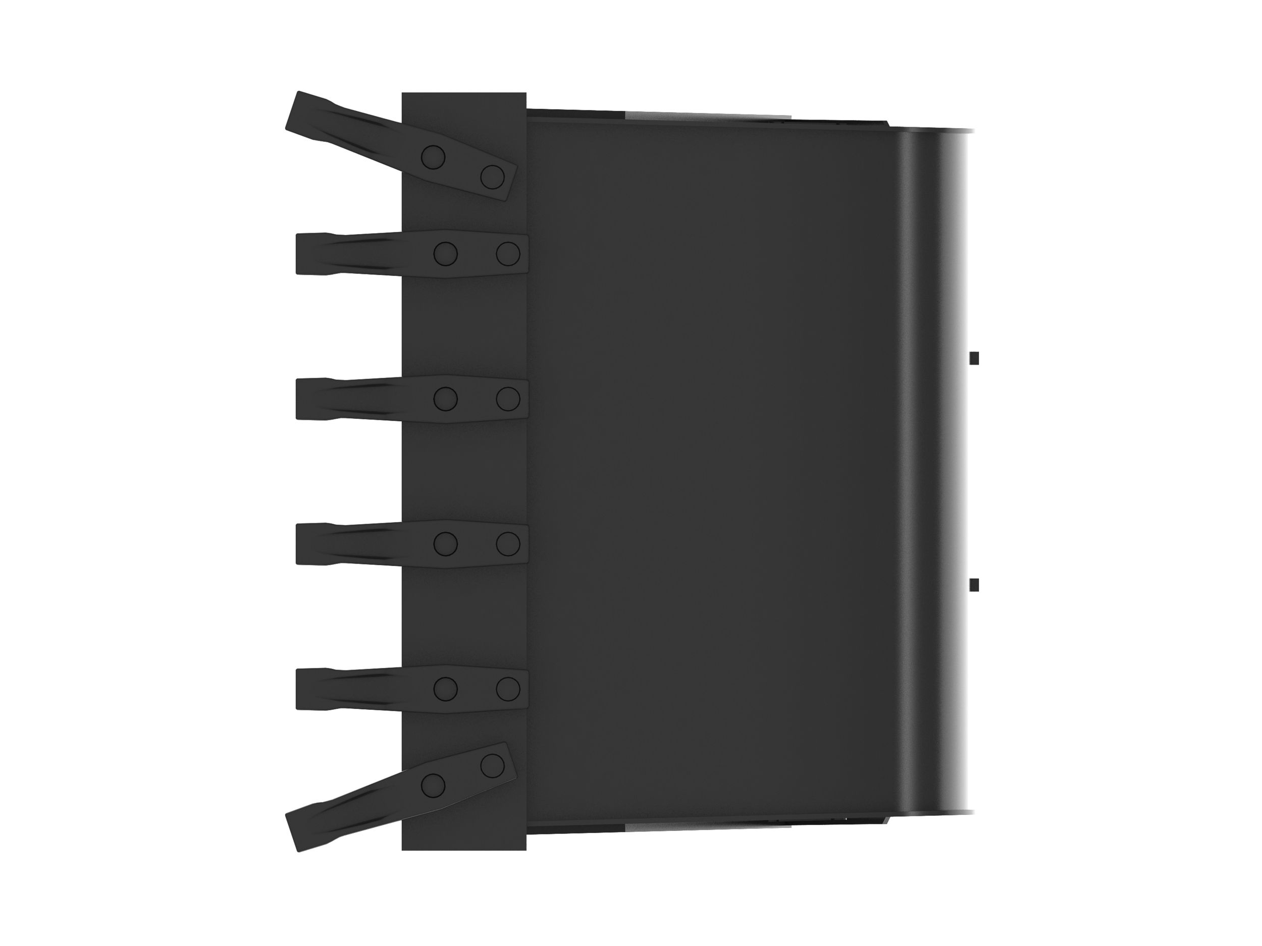 Enhanced bucket shape allows material to flow more easily. Tapered bucket sidewalls allow for easy dumping of sticky material.