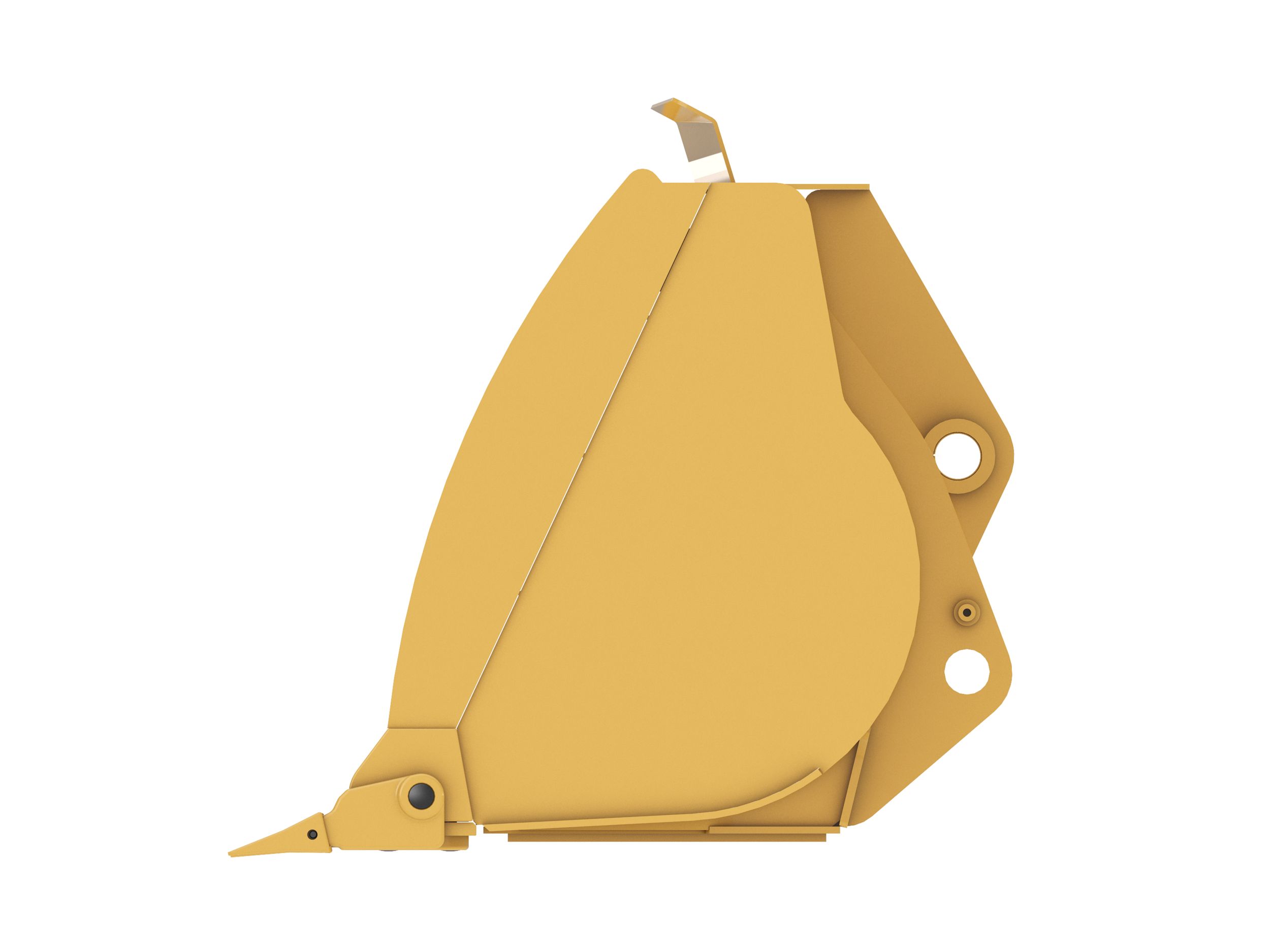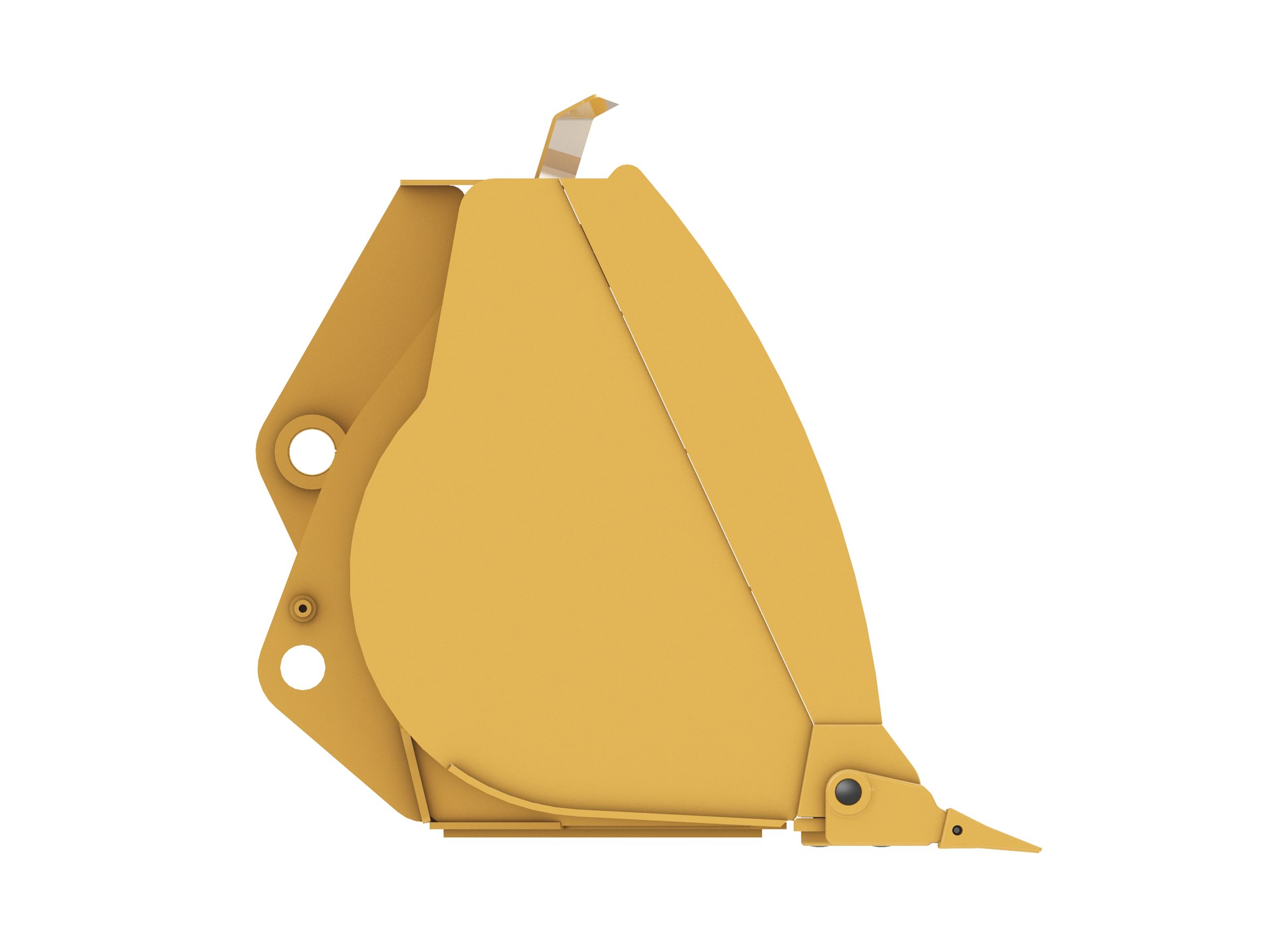 Penetrating rounded sidebars help funnel material into the bucket, holding more material with less spillage.