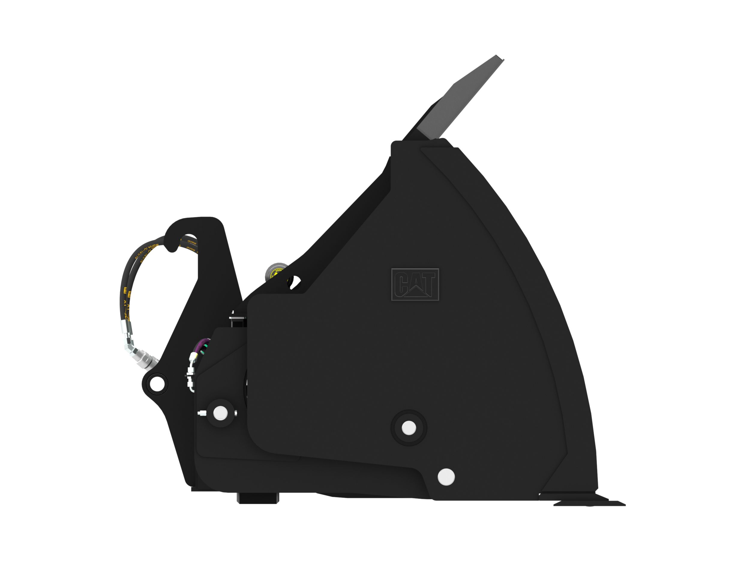 Diverts overflow away from hinge pins, lift arms, hydraulic cylinders and tilt sensors which helps to protect the machine from damage. Also creates good forward visibility for the operator.