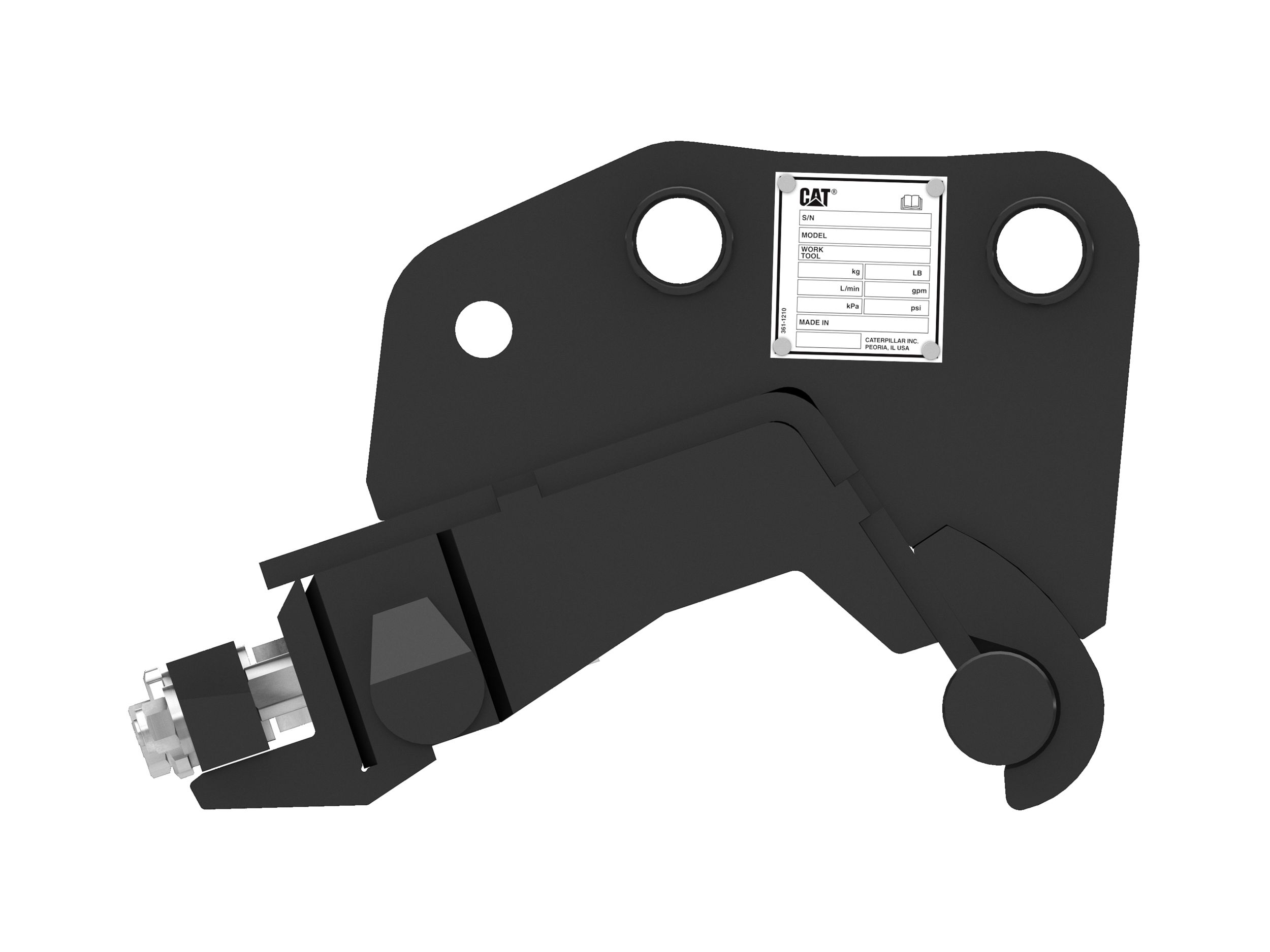 Hook on front axle is a safe procedure to attach and disconnect tools to the quick coupler and provides an additional safety feature against unwanted disengaging of the tool.
