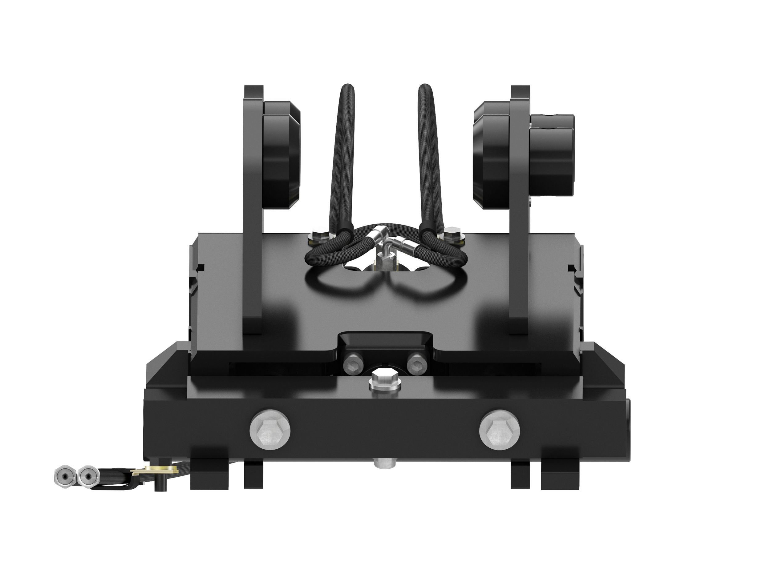 Optional lifting hook is an alternative to the lifting eye on machine linkage.