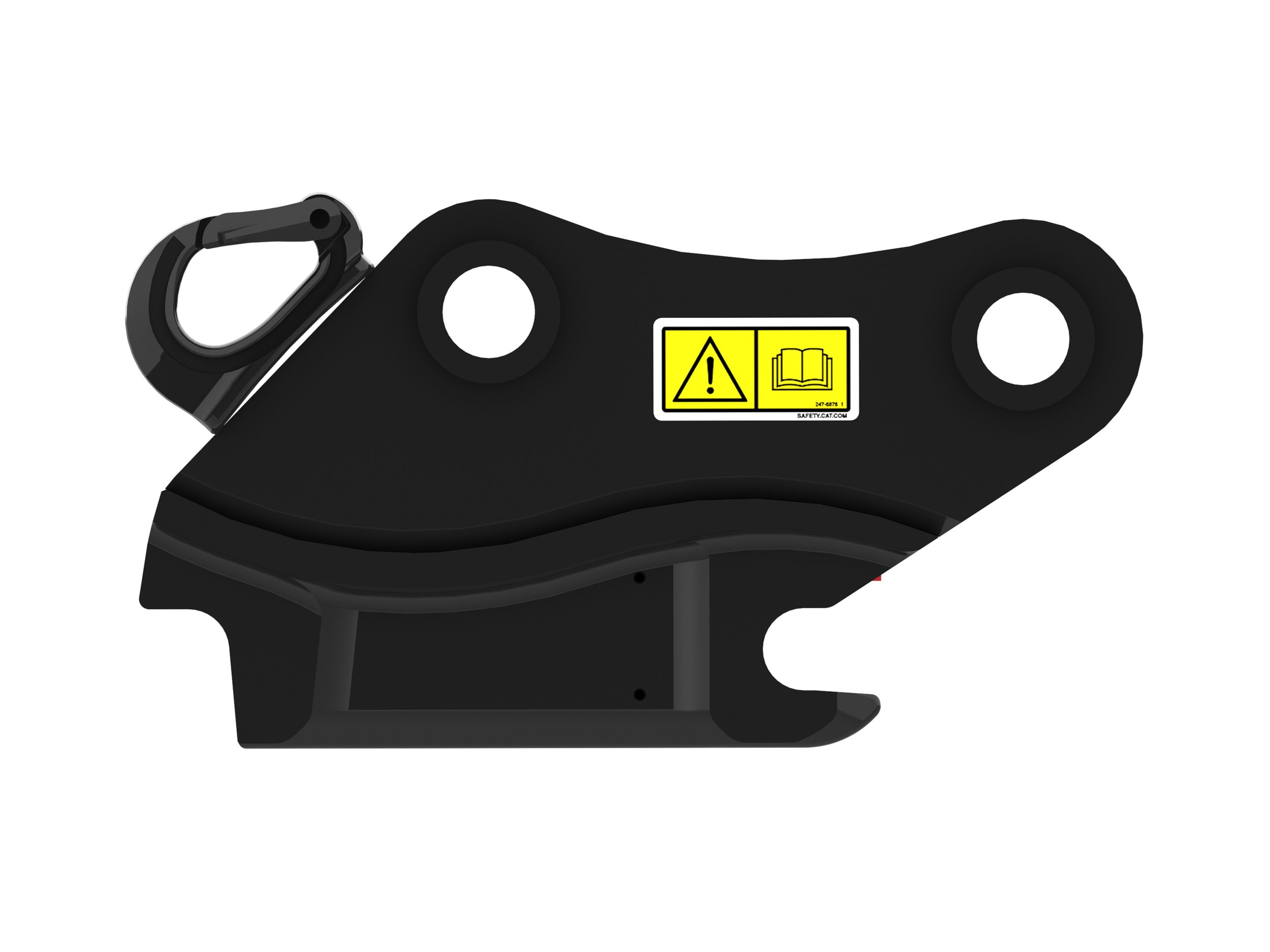 The visual verification rod allows the operator to visibly confirm, from the cab, that the coupler has successfully locked the attachment into place properly.