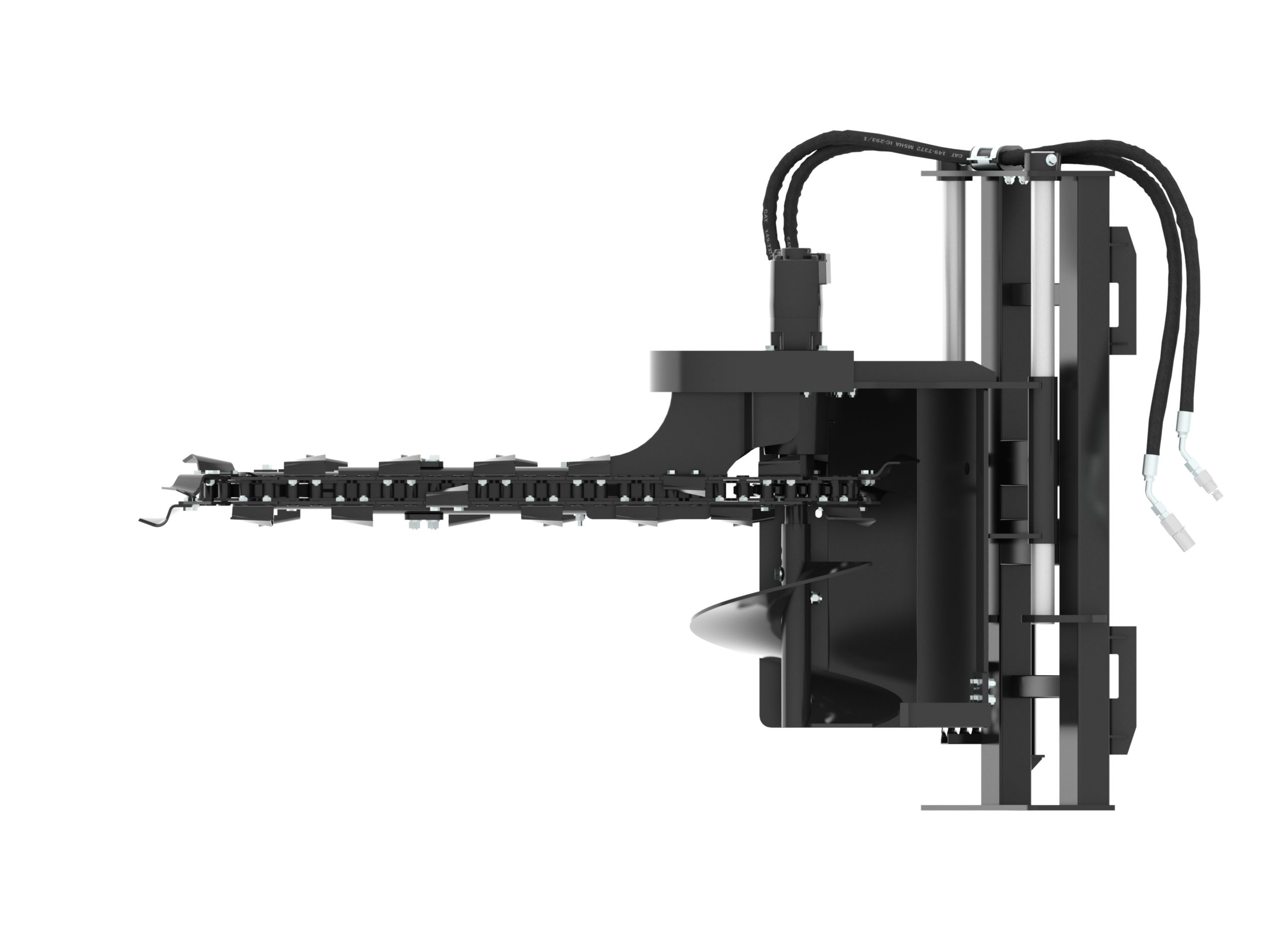 Large diameter bolt-on spoil auger improves loose soil removal from trenching area and allows for quick, easy removal and servicing.