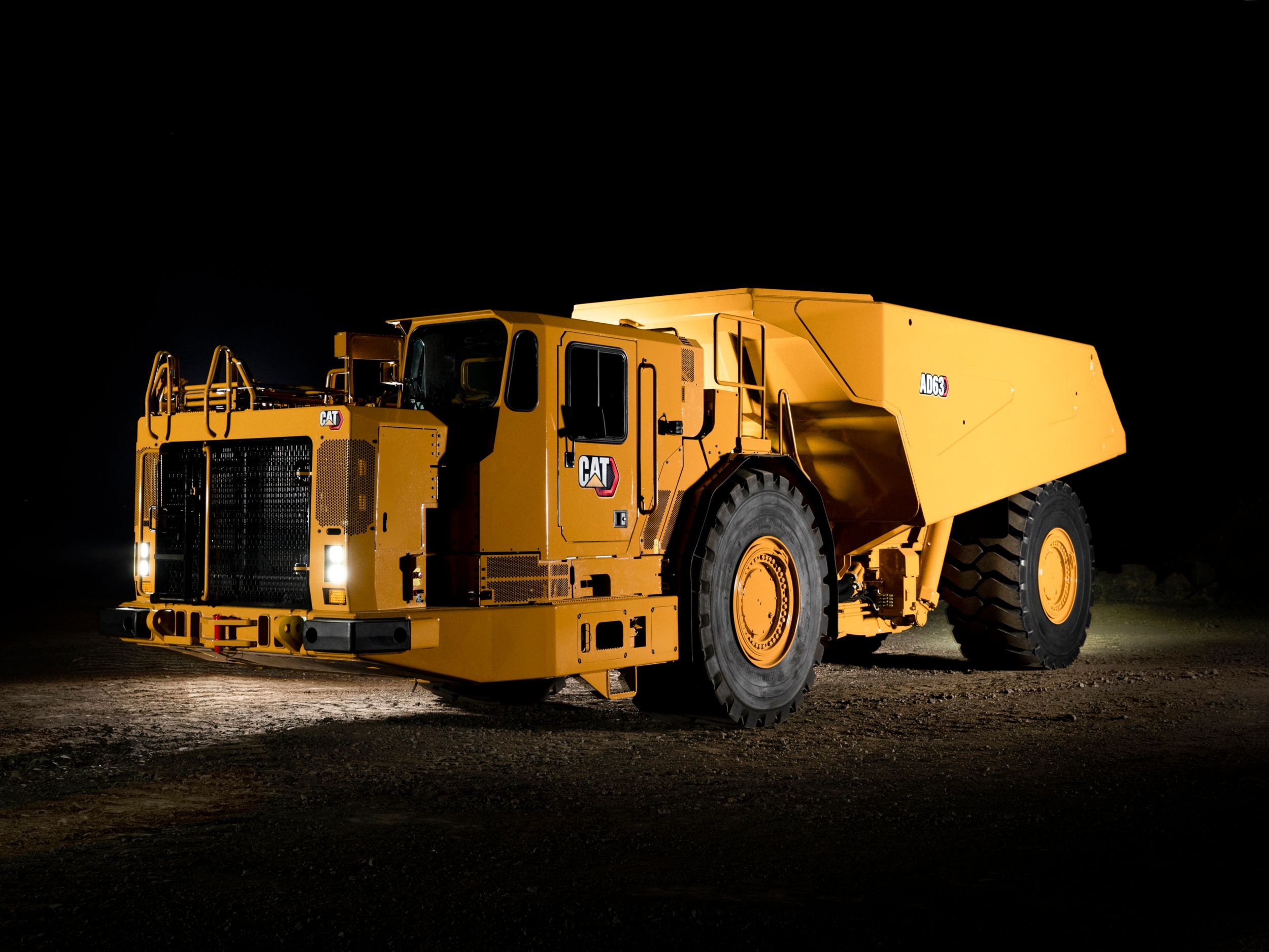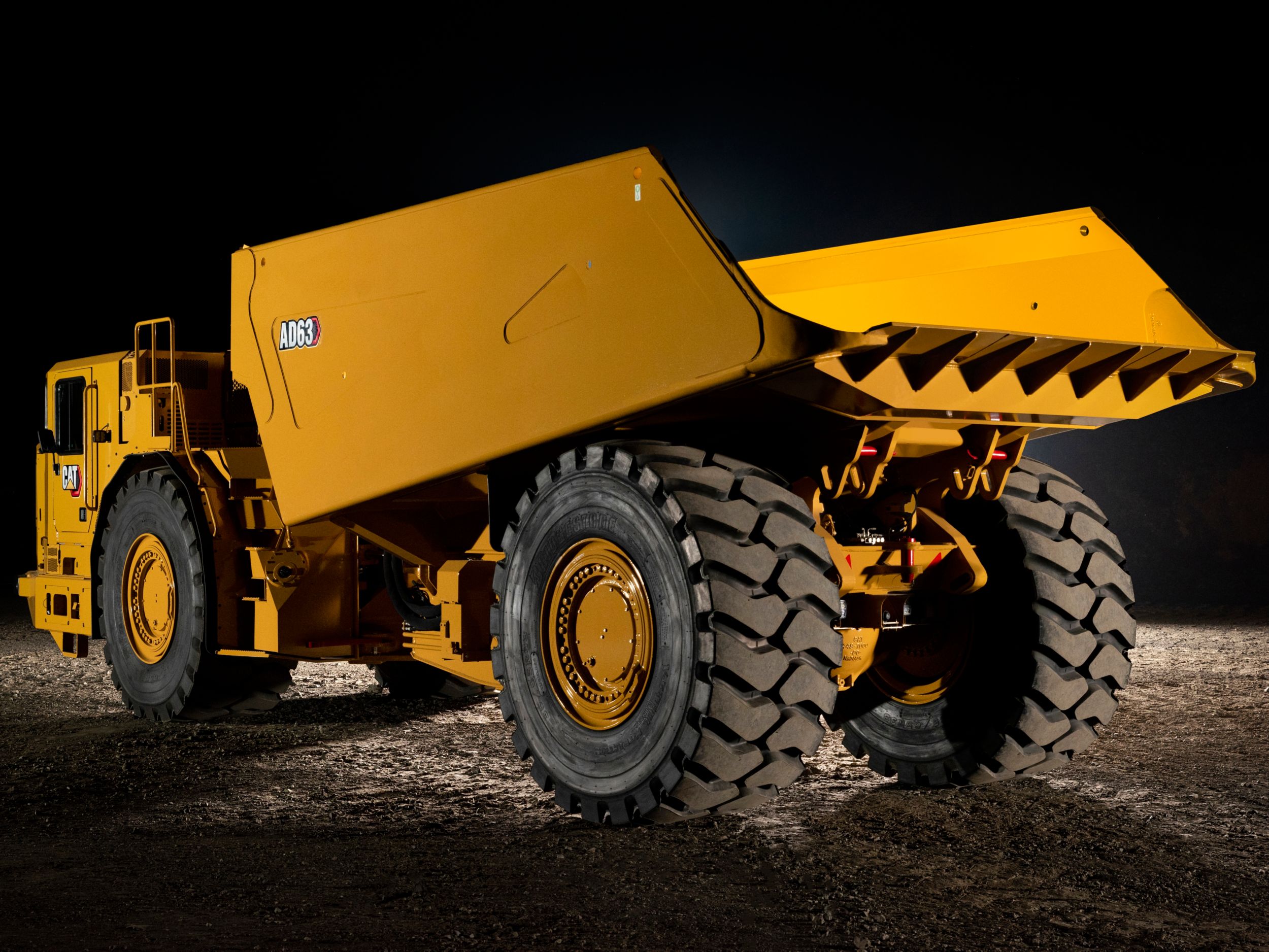 The Cat® AD63 Underground Truck is designed for high production, lower costs and increased efficiency. It’s built tough to stand up to the harsh conditions of your site, and features a number of improvements over its predecessor, including a 5% greater payload and more torque. The world-class cab keeps operators safe and comfortable all shift long, and new enhancements help ensure the safety of everyone working in, on or around the machine. It’s powered by a Cat C27 engine that meets EU Stage V Emissions Standards for cleaner performance, as well as reduced ventilation costs. And its rugged construction and simplified maintenance make for longer life and lower operating costs, so you can get the most out of your investment.